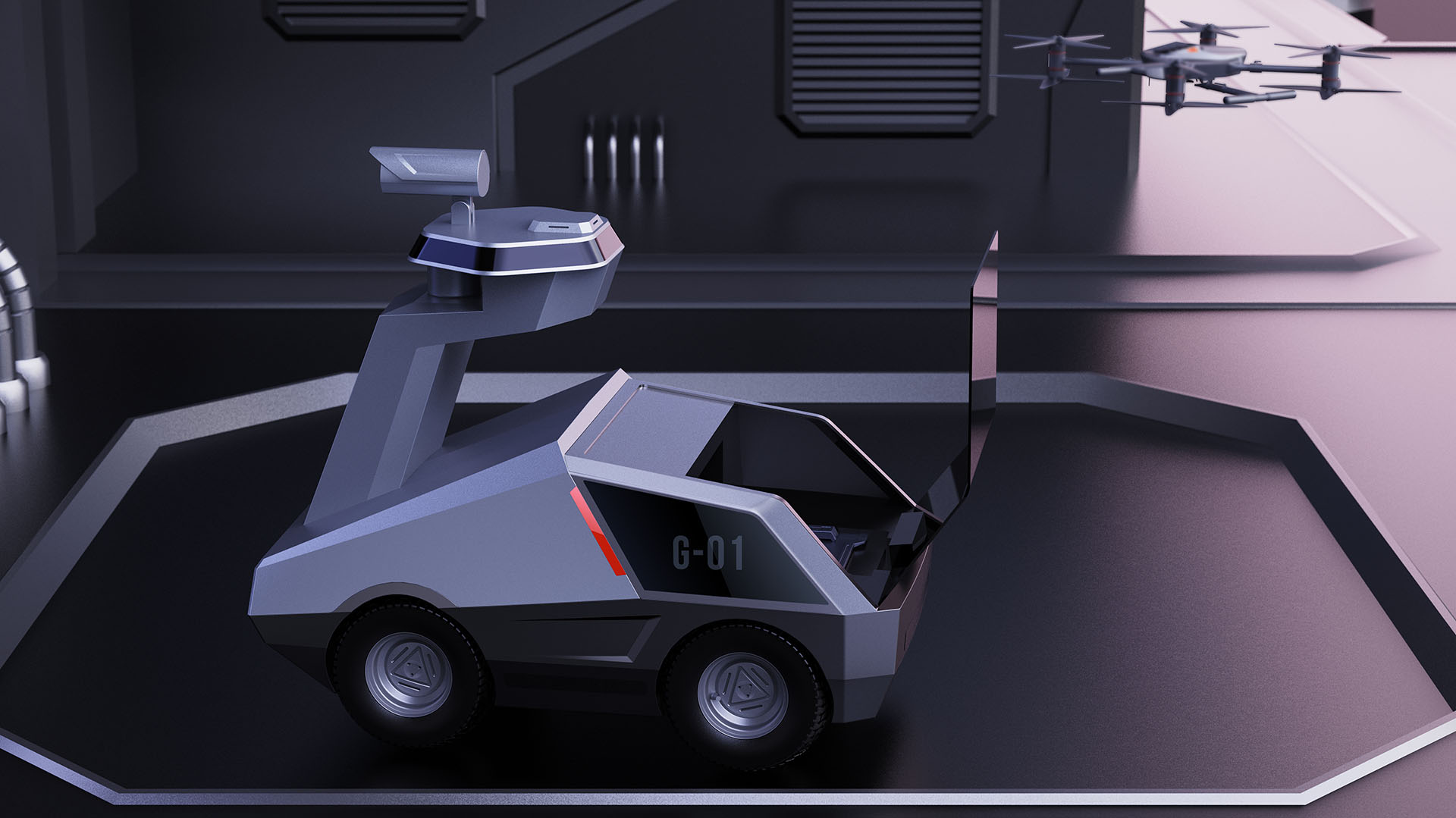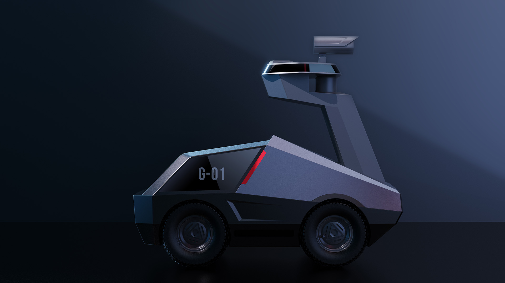 加利弗为客户设计的这台守卫者安防巡逻机器人,颠覆了传统造型。整车运用机甲分割法极具安全感的同时,结构上也起到坚固的作用。