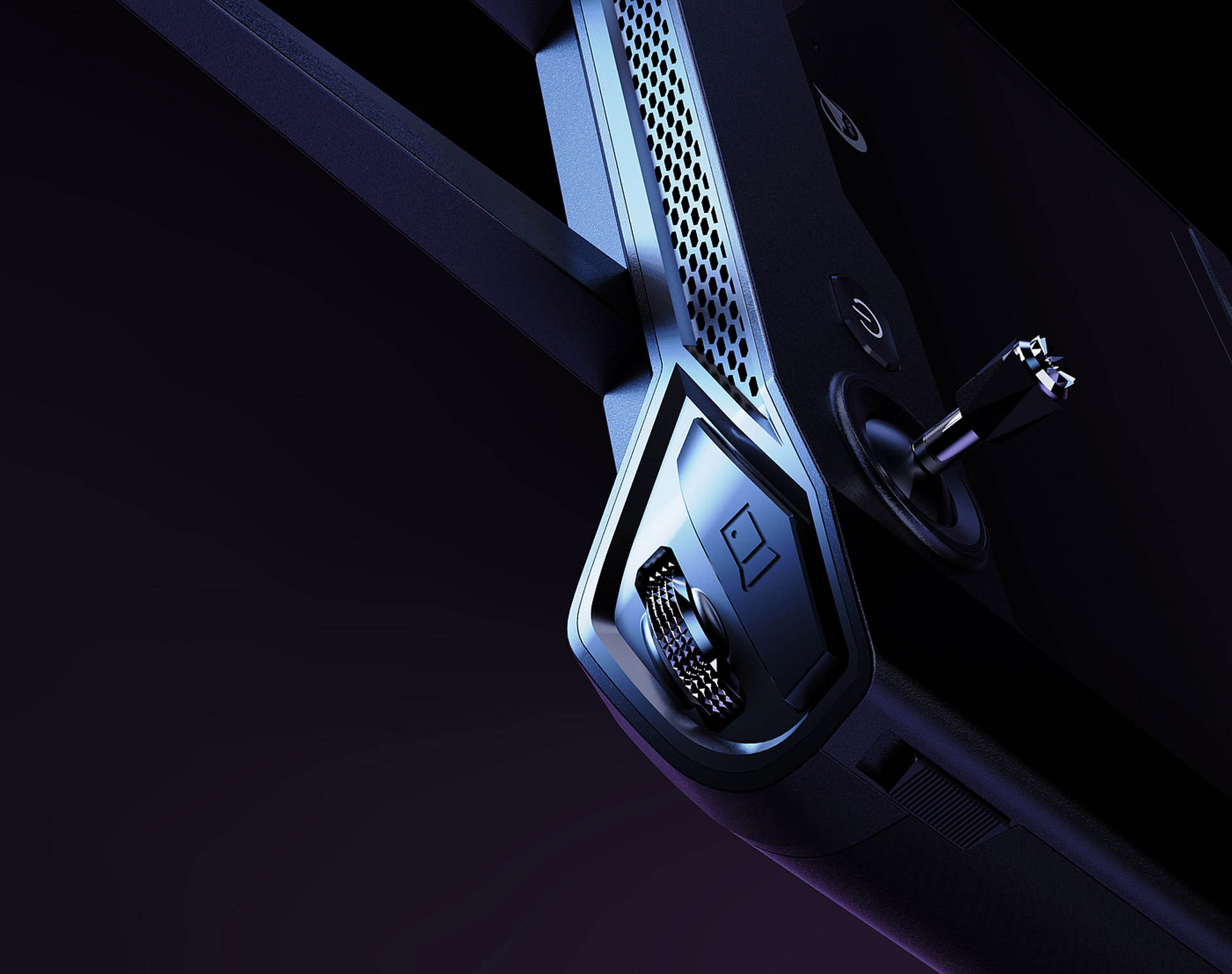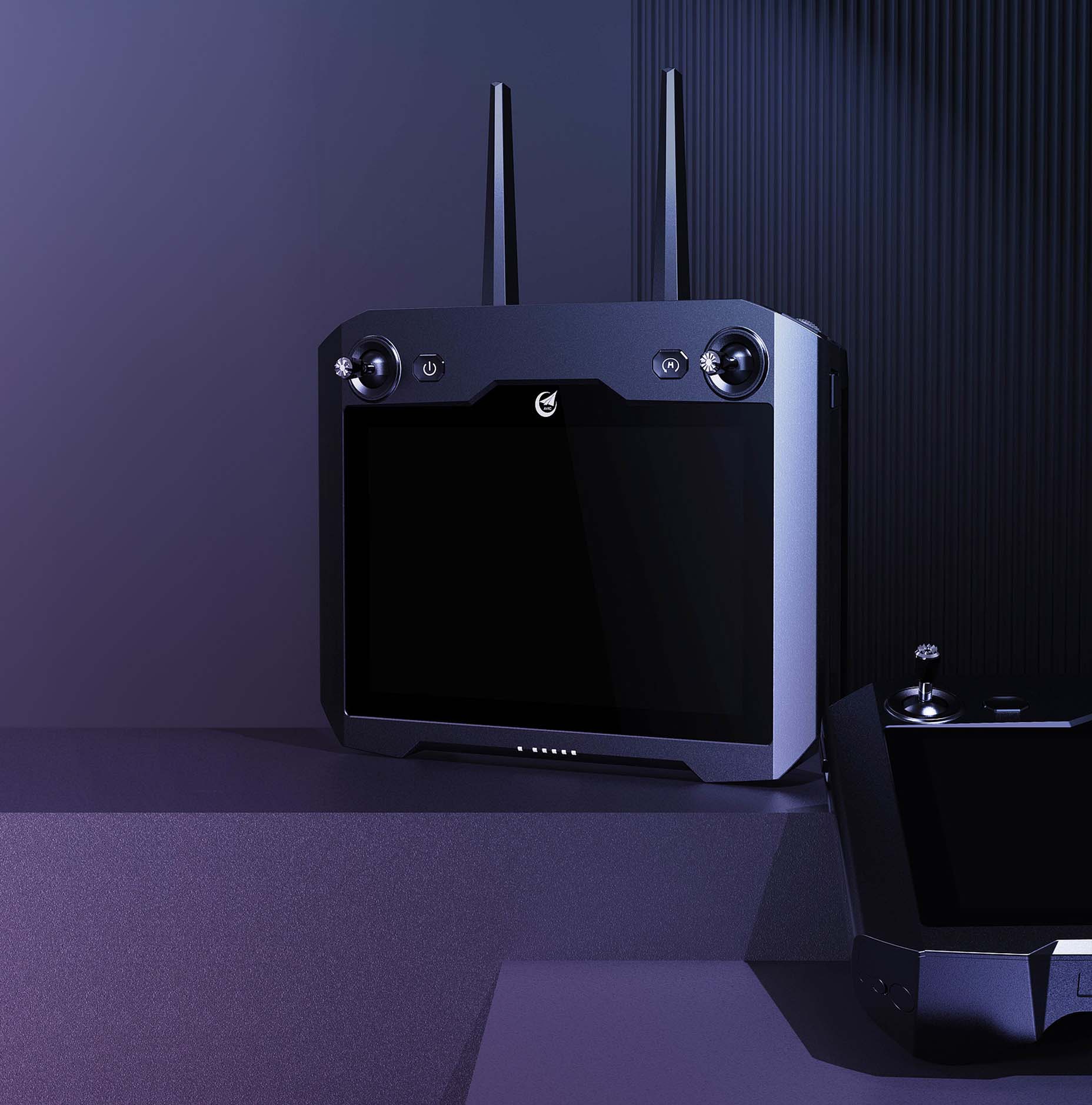 该款无人机遥控器主要用于专业领域,如户外测绘等场景,加利弗团队在外观设计上主要从体现专业化入手,整体采用兰博基尼设计风格,硬朗的切割方式体现工业风的质感,多层次的线条运用凸显产品的专业性,顶部造型源于兰博基尼尾部形态,丰富的块面变化,让造型更加丰富,同时还是出风口,兼顾了美感与功能性。按键的排布以及高度,经过反复测试及对比,符合用户操作的理想选择;天线的设计也是菱形切割设计方式,细节的设计统一使产品更专业;天线可以折叠收起,方便收纳及包装,贴心的人性化关怀,更能体现大品牌的价值主张;整体产品一气呵成、细节统一,符合大品牌的一贯主张。