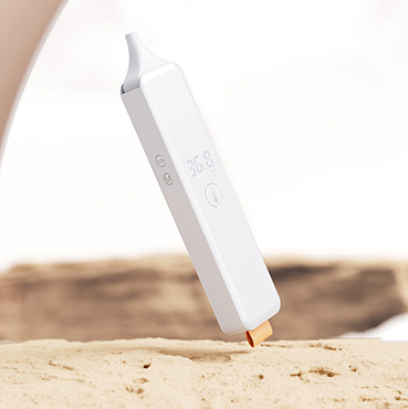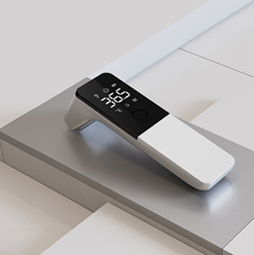 - 额温枪设计简约撞色,全面屏视觉,背后弧度人机设计,贴合人手握持手感,更加舒服。