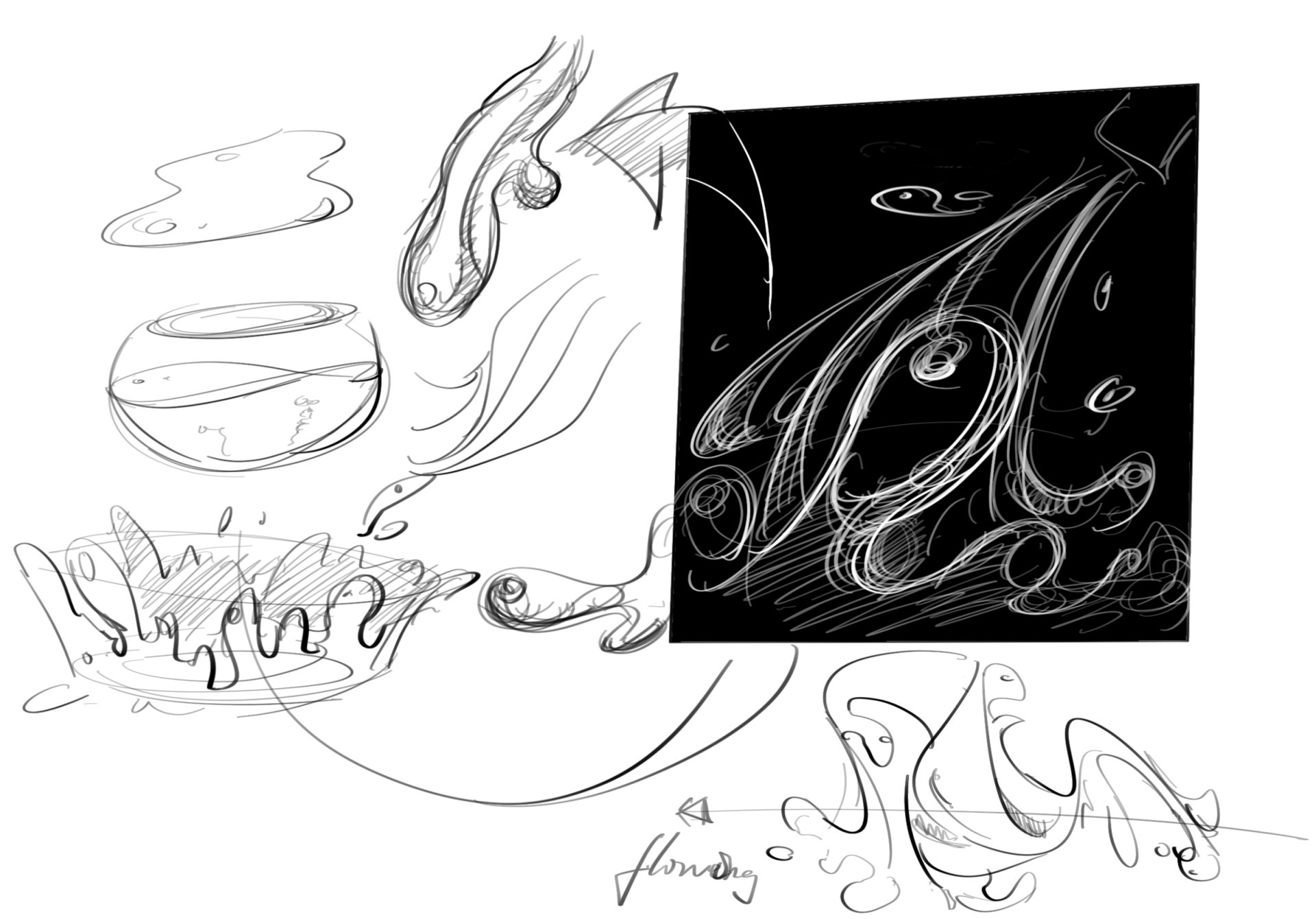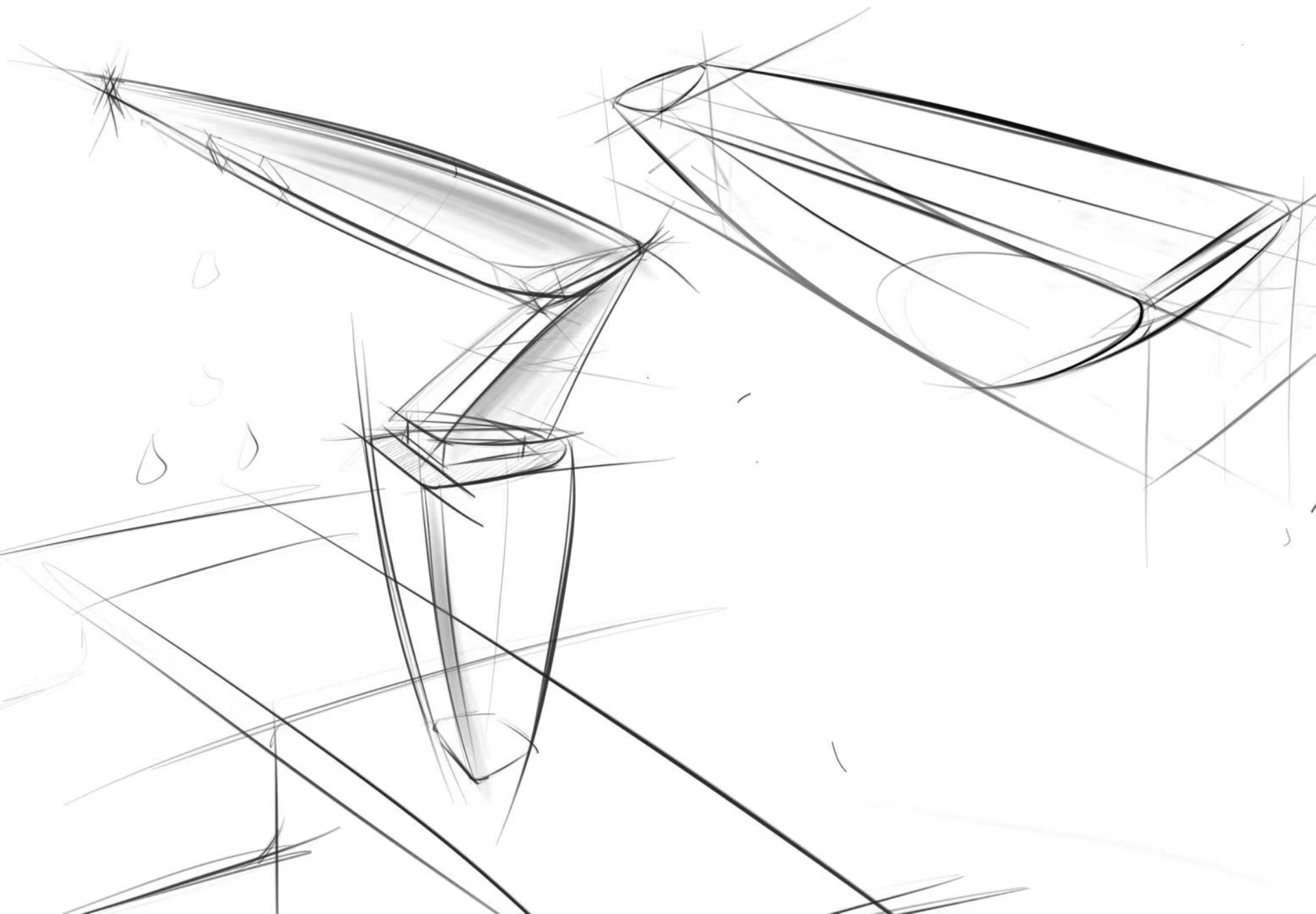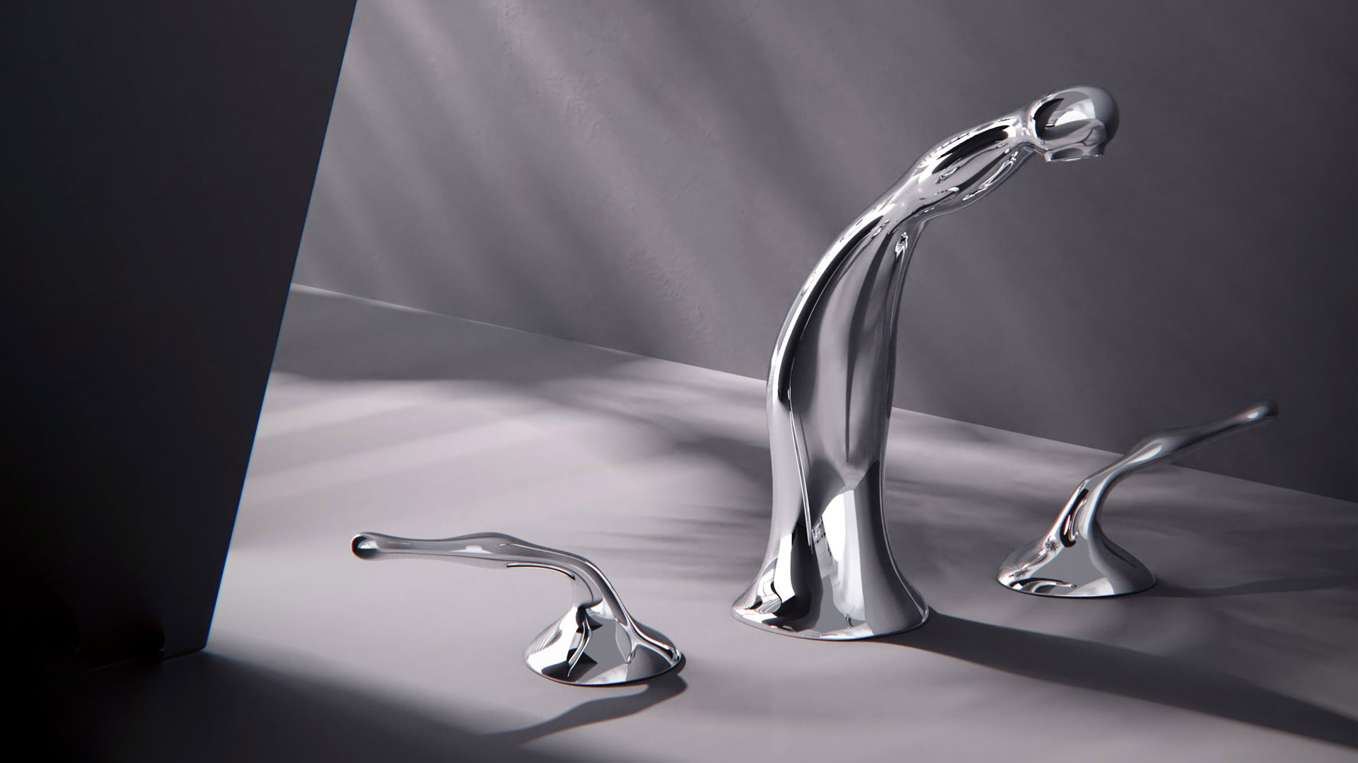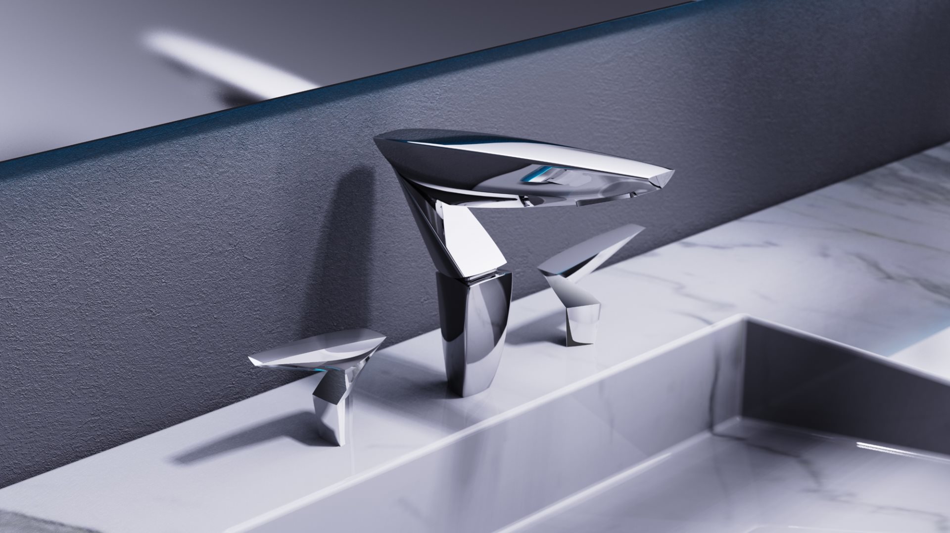在创作过程中,设计师运用了多种产品设计手法,包括草图绘制、手绘图表达以及3D模型构建,不断探索与完善。每一步都倾注了对完美的追求,直至水龙头呈现出液态金属的视觉效果。金属电镀工艺的应用,让产品在具有高度辨识度的同时,也展现了现代工艺与自然美感的完美结合。