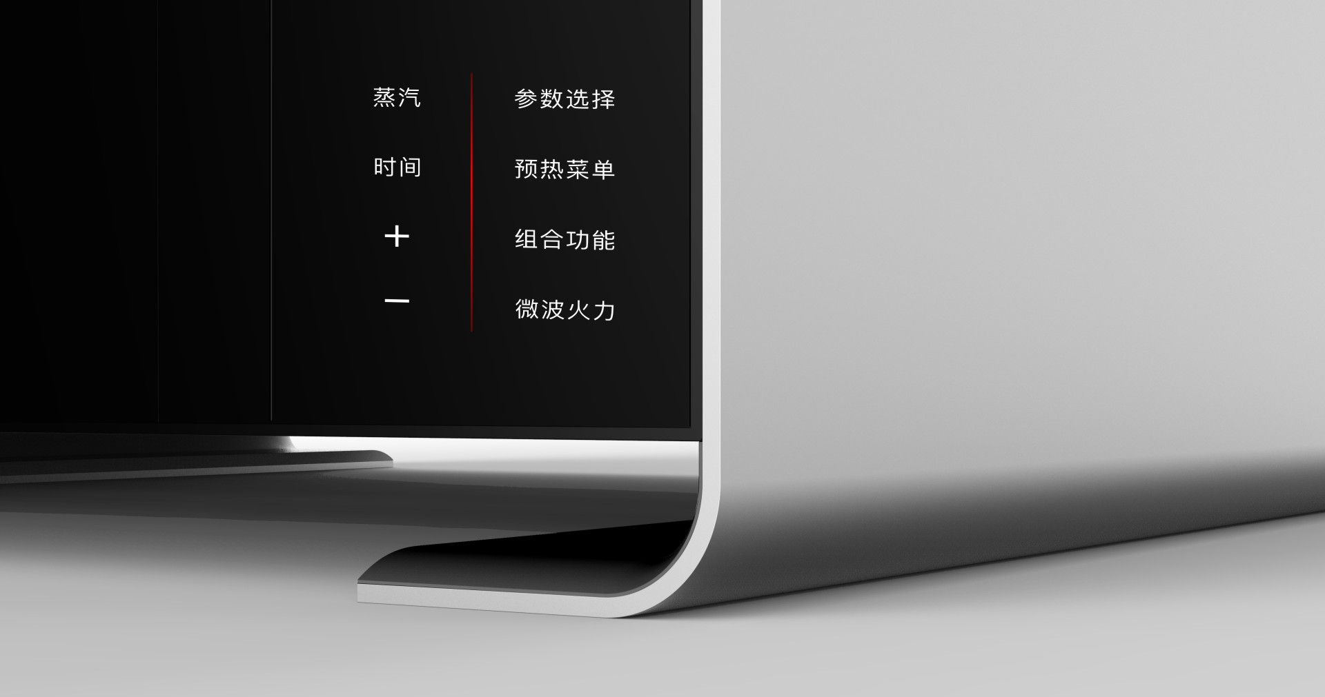悬空微蒸烤一体机设计细节介绍。悬空设计,悬空,磁悬浮,时尚未来的代表,突显产品前卫,满足人们对时尚的追求,同时减少蒸烤机与台面的接触面积,减少交叉面藏污。我们知道厨房是做饭洗碗洗菜的地方,难免有水,但悬空设计,悬空位置,空气流通,易风干,让台面更干净。大面积的金属铝合金材质,显档次。色泽银色,百搭色,利于与居家环境相融合。整体风格极简,吻合当今主流风格,追求简约,一气呵成铝合金包裹,一体式的铝合金把手。简约而不简单,铝合金包裹,同时附于底坐支撑功能。铝合金把手也是,从正面上看就是一极简长条形,又附于把手功能。通过各各方方面面细节设计上的把握,也是这款产品成功之处!