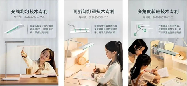 眼爸爸护眼台灯逐个解决了孩子长时间学习三大痛点。在光线过亮,导致眼疲劳,长时间出现头疼症状痛点上,眼爸爸专利光线,平均不超过750lk,每个角落,光线都适合学习。