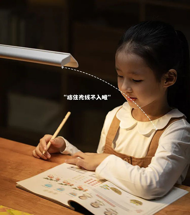 在灯光炫光,长时间炫光刺激,将导致眼疲劳,视力模糊的痛点上,眼爸爸护眼台灯不晃眼,只需一步,眼爸爸专利可拆卸灯罩,靠近可自动吸附,挡住光线不入眼。