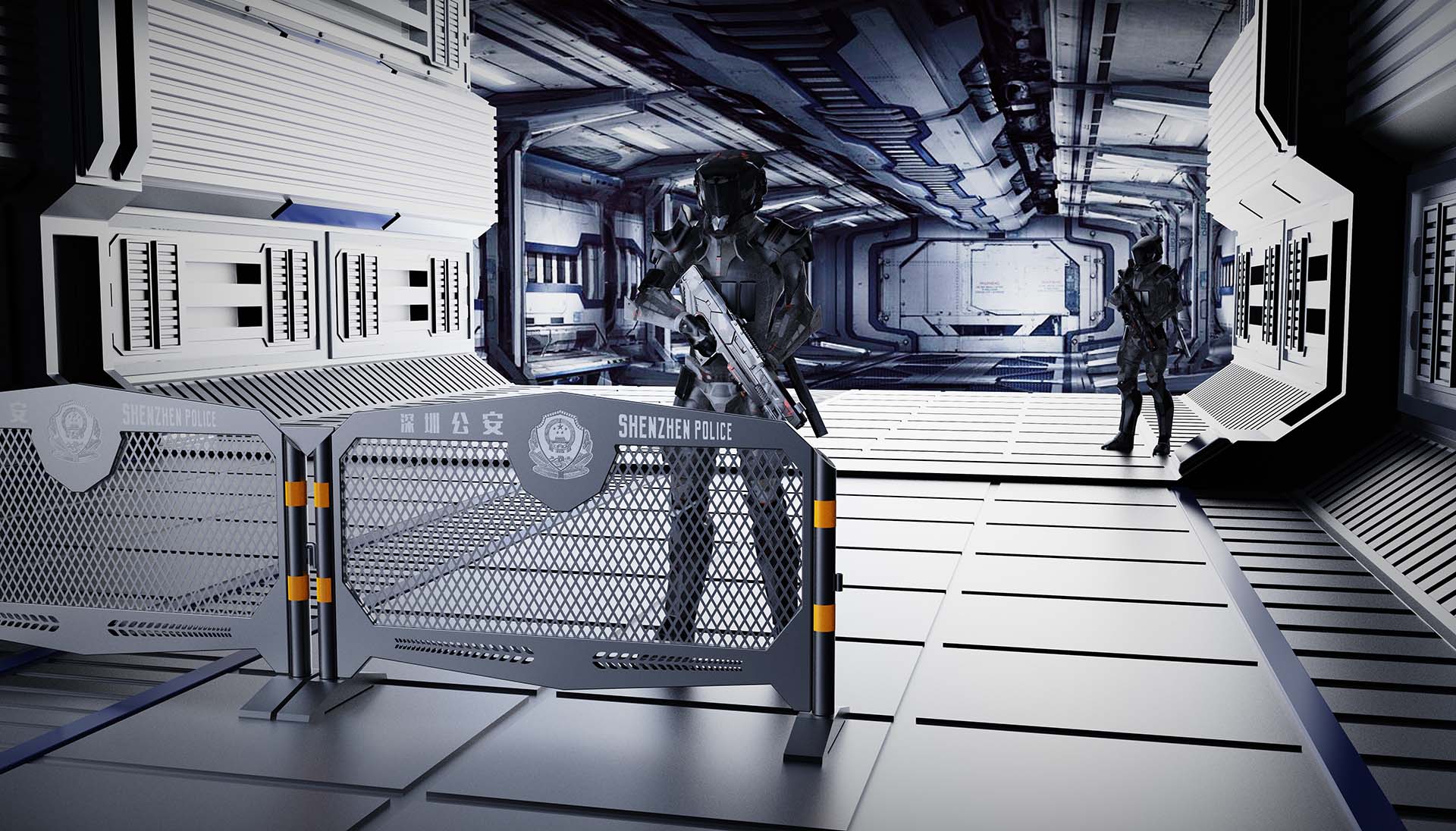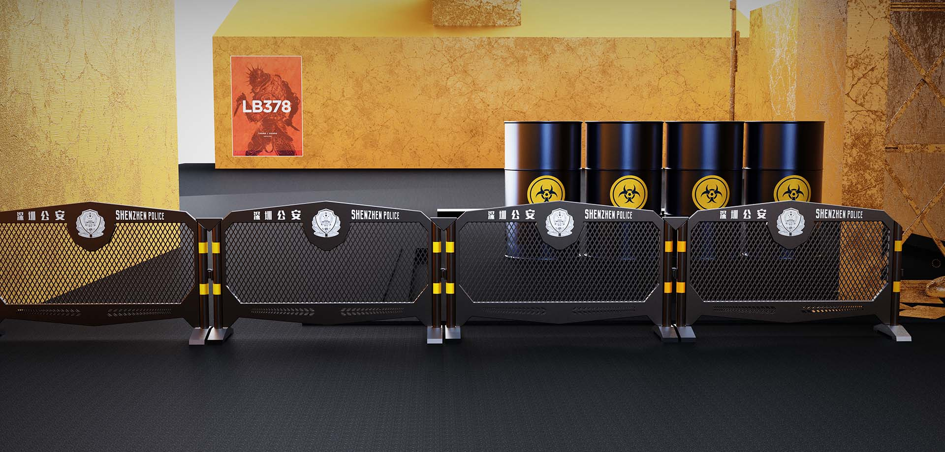 加利弗完成深圳城市警用铁马设计后,绝大多数重要大型政府会议或者高规格展会都是使用这款铁马作为防护墙,展示深圳公安的新形象。