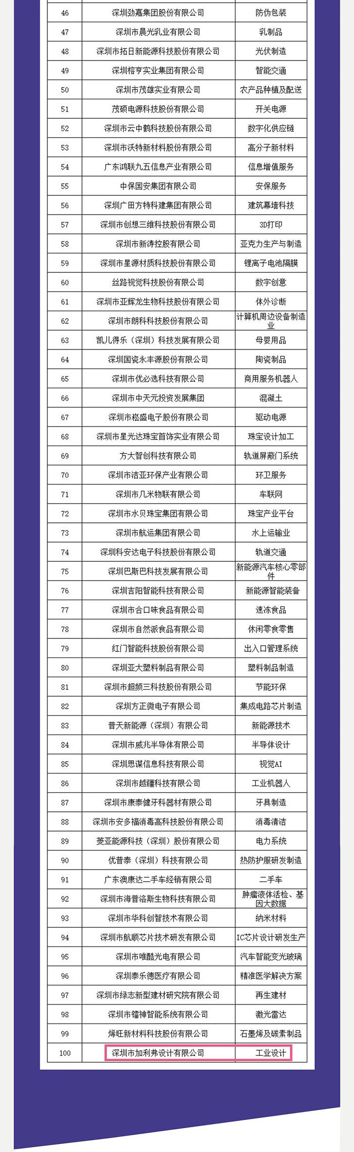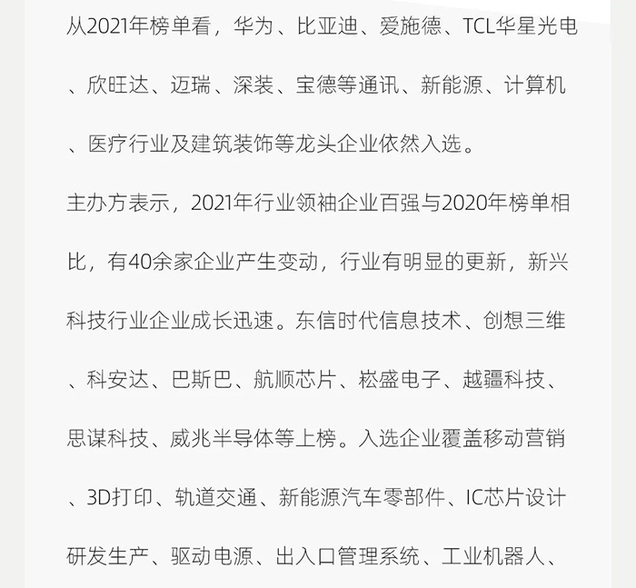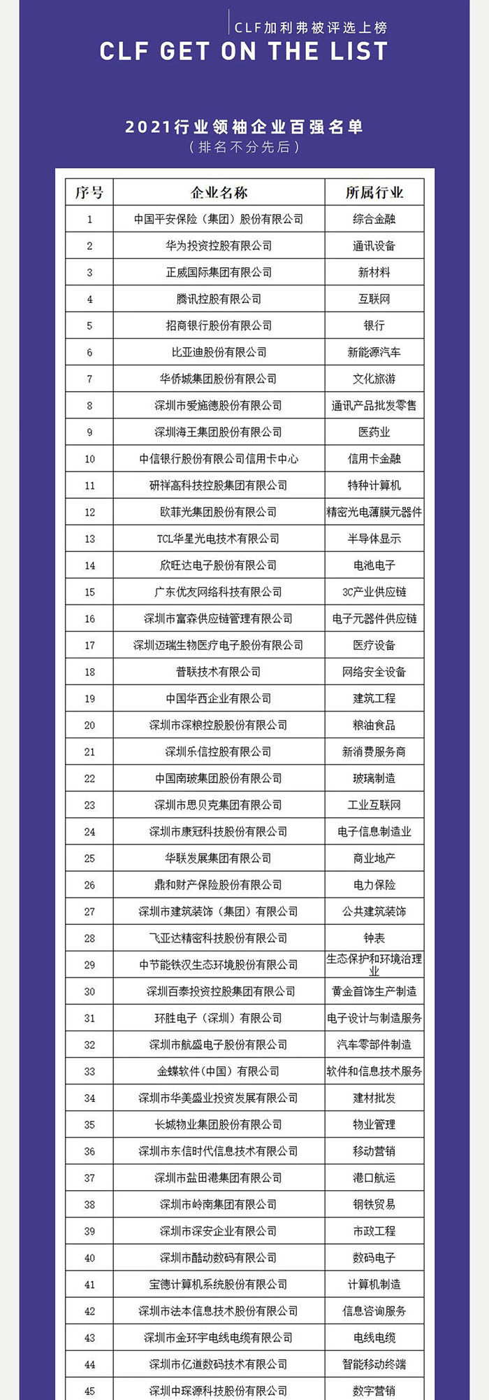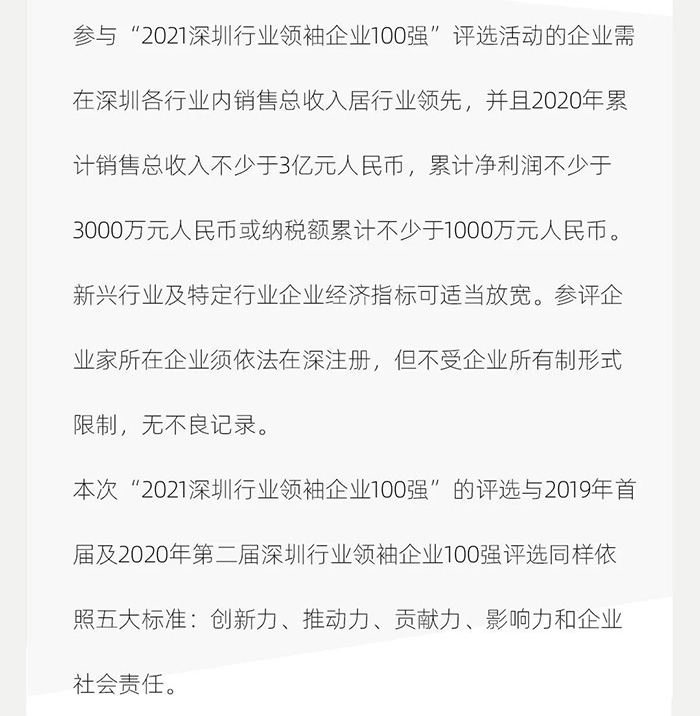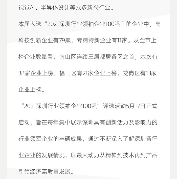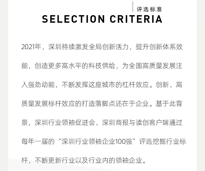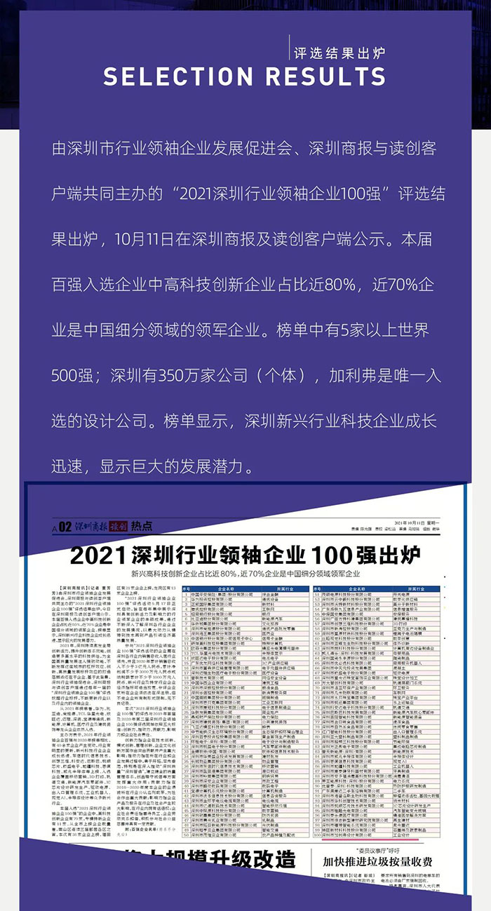 标题:2021深圳行业领袖企业100强出炉,CLF加利弗作为唯一一家设计公司上榜