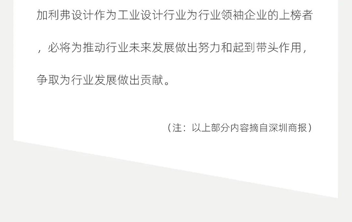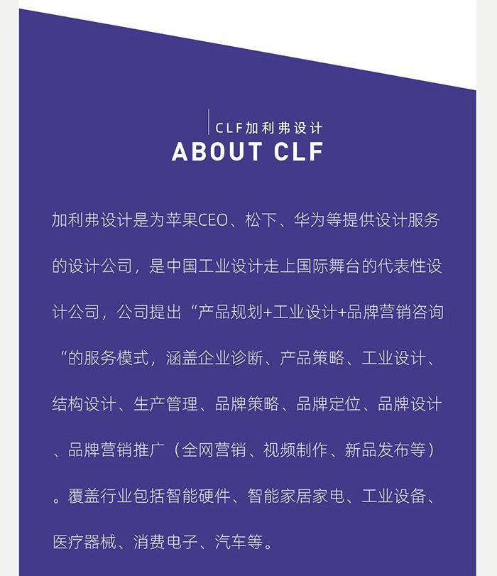 【加利弗设计是为苹果CEO、松下、华为等提供设计服务的设计公司,内容涵盖工业设计,产品设计,工业产品设计,外观设计,结构设计,品牌设计等。以上部分内容摘自深圳商报,若有不足请联系我们处理】