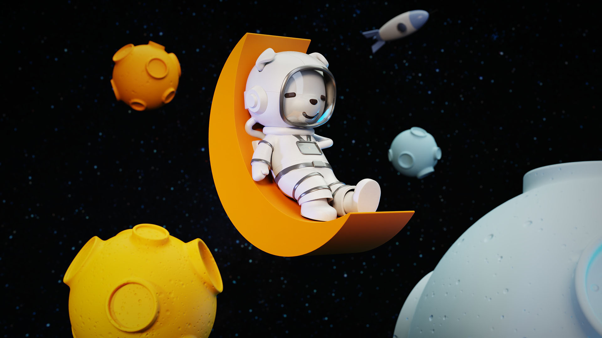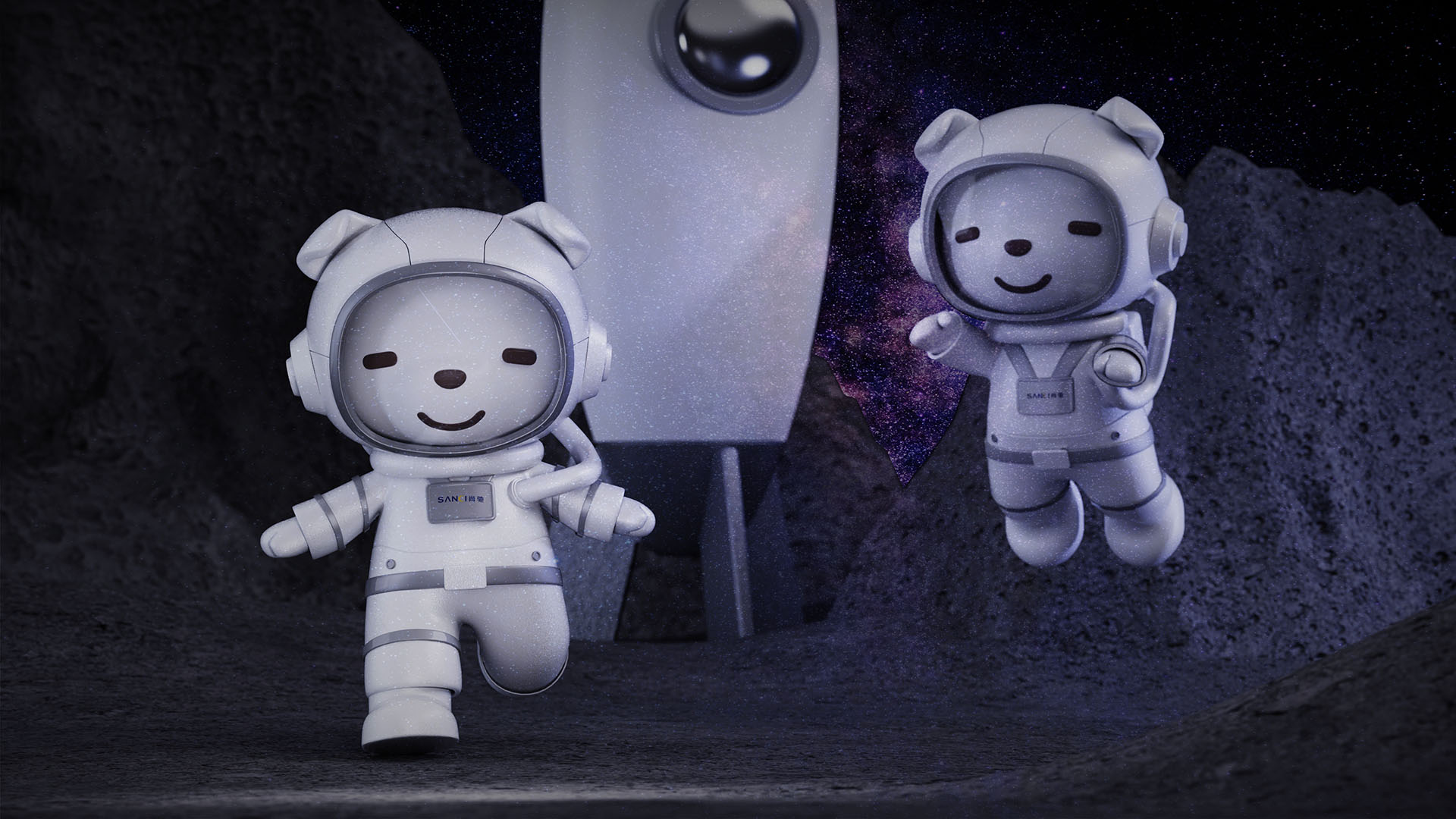 尚驰作为中国航天事业合作伙伴,历来秉承航天精神在发展,IP设计元素需结合航天科技(太空元素)和亲切感(睡眠元素)进行打造,最终形象经过加利弗反复推敲,全新IP设计“小驰”太空狗闪亮登场!