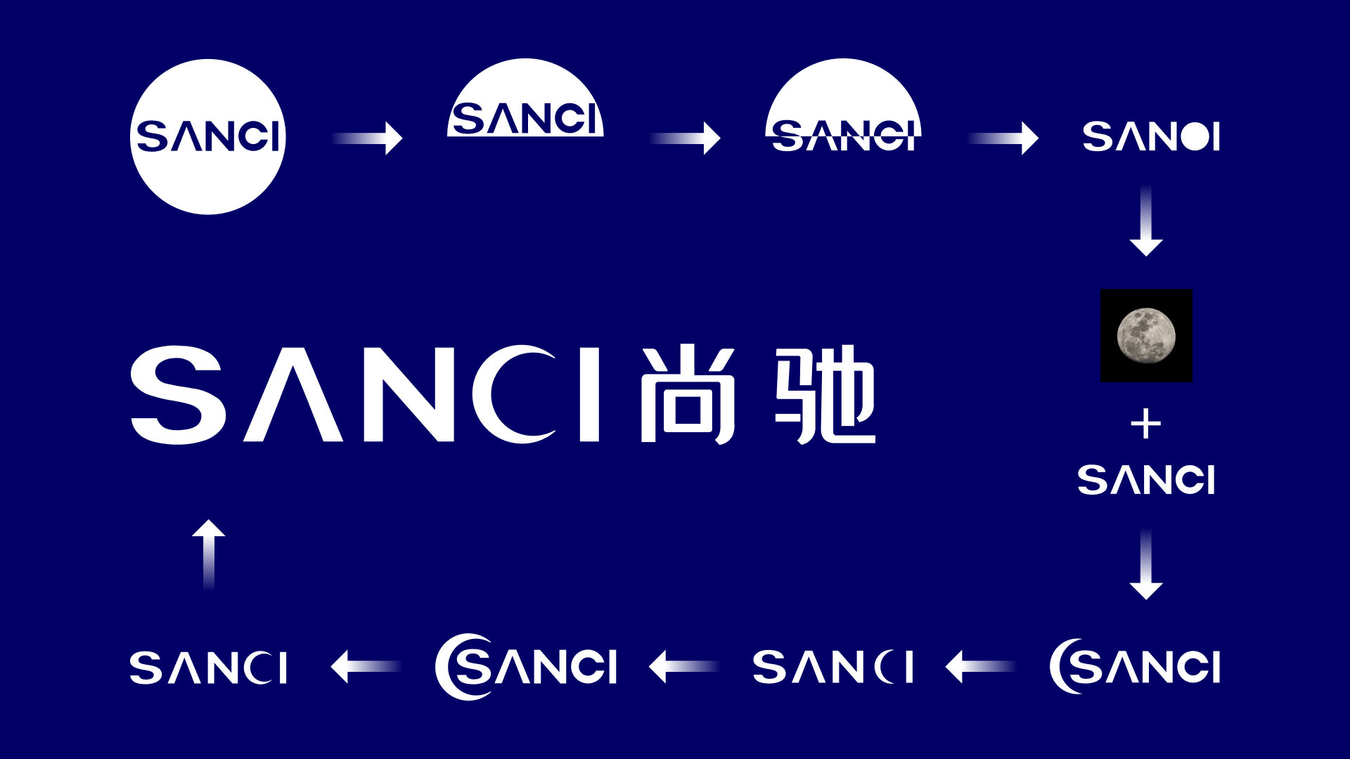1、在设计语言中,月亮常被代指夜晚、安眠等,与尚驰主打的“健康睡眠”理念十分契合。于是加利弗将月亮进行几何化设计并规整造型,将其融入品牌名称“SANCI”的字母“C”中,使得LOGO设计在原有的基础上更具备识别性。