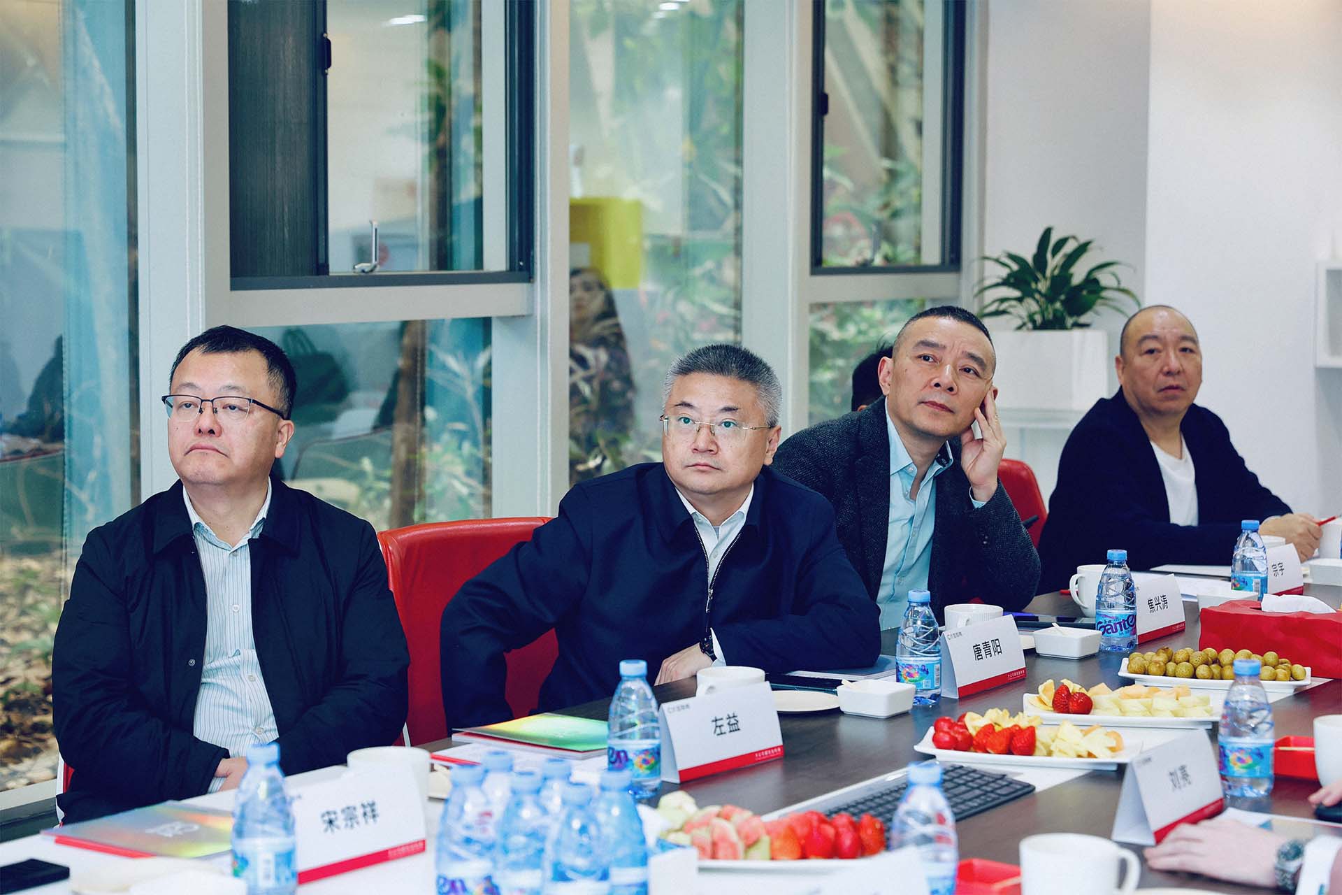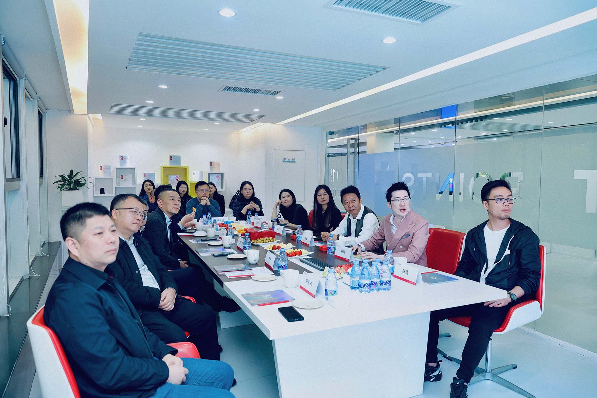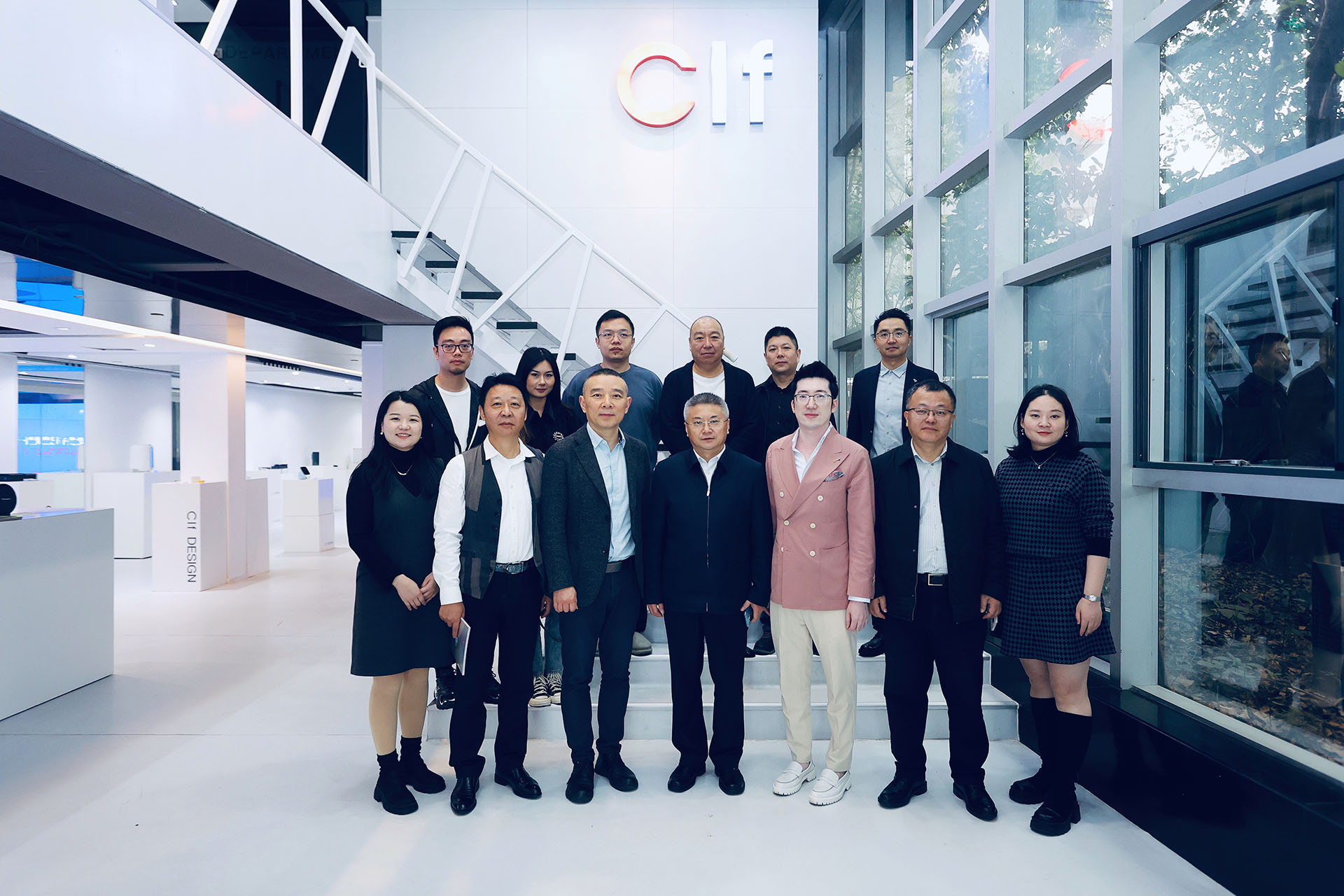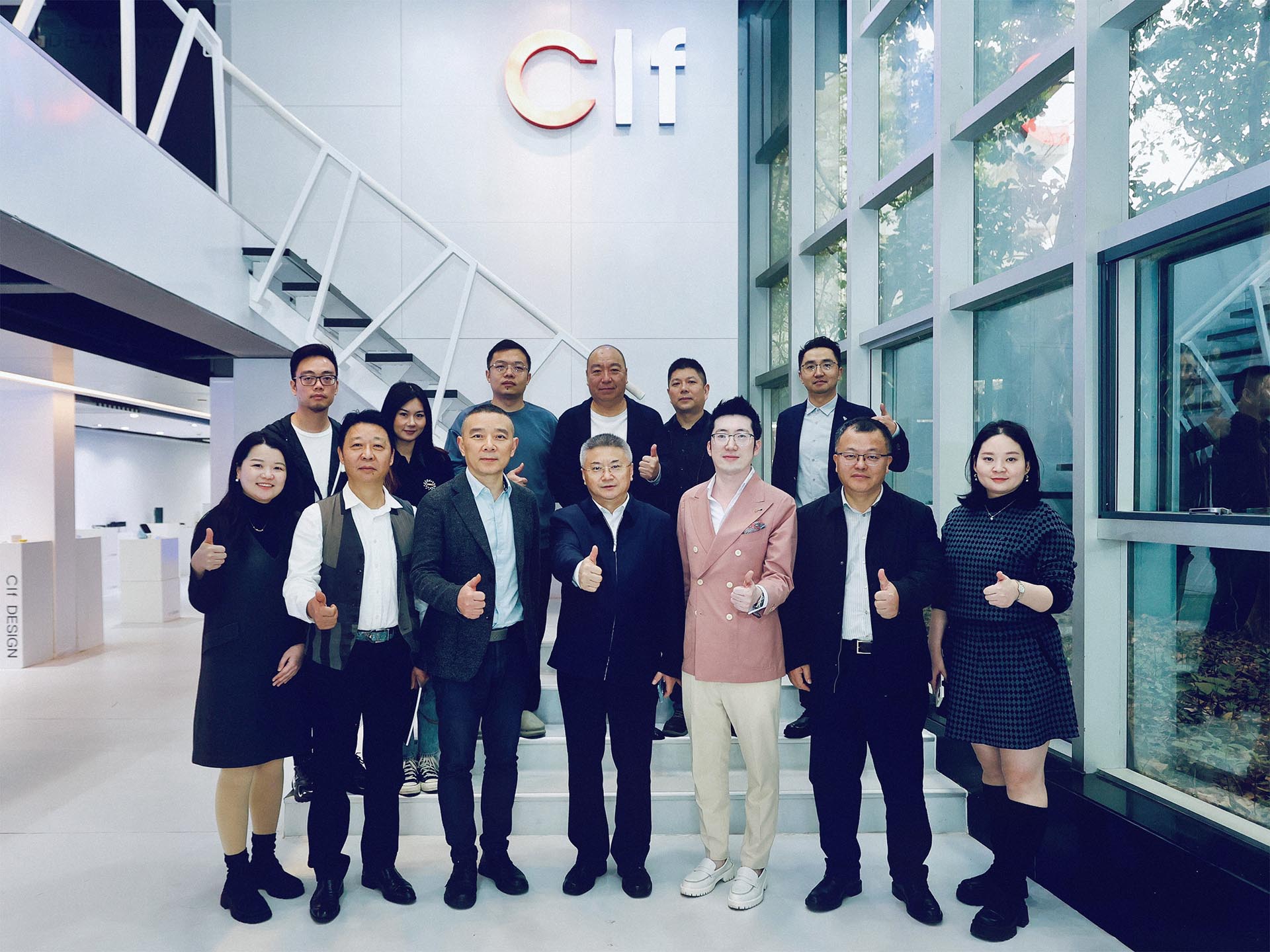 此次前来的四川美院领导有党委书记唐青阳(一排正中)、党委副书记左益(一排右二)、副校长焦兴涛(一排左三)、党政办主任党委常委宋宗祥(二排右二)、党政办副主任宗宇(二排右一)、博士生导师潘召南(二排右三)、川美深圳校友会会长涂峰(一排左二)、深圳校友会执行会长陈雨(二排左一)、深圳校友会秘书长唐旗(二排左二)、川美湖南校友会副秘书长陈娟(一排左一)、深圳校友会常务理事姚亚平(一排右一)、深圳校友会理事徐振邦(二排左三)以及加利弗创始人兼CEO刘亮(一排左三)。
