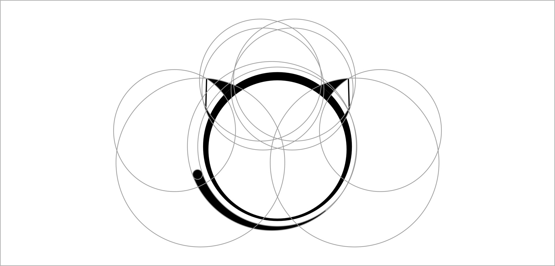 以圆形(太阳)为主题形状,耳朵和尾巴部分利用圆形比例分割,简化而来,图标在简约的同时,更好的体现“阳光猫”